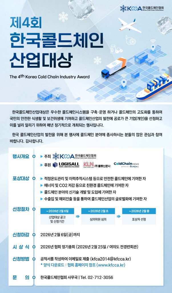 한국콜드체인협회, 제4회 산업대상 후보 모집