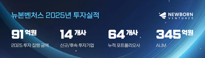 액셀러레이터 뉴본벤처스가 2025년 투자 실적을 발표했다. 올해 신규 투자 10건과 후속 투자 4건을 포함해 총 14개 기업에 자금을 집행하며 누적 포트폴리오를 64개사로 확대했다. 주요 투자처로는 셀리코, 가디언에이아이, 모리, 그린컨티뉴, 딥세일즈 등이 있으며, 기술성과 사업성을 겸비한 초기 기업을 선별해 산업적 다양성과 성장 잠재력을 강화했다. 또한 57억 규모의 신규 벤처투자조합 3개를 결성하고 기존 펀드에 45억을 추가 출자해 운용자산을 345억으로 늘렸다. 누적 투자금액은 285억 원에 달하며, 테라헤르츠 검사 장비 기업 테라뷰가 영국 국적 기업 최초로 코스닥에 상장하는 성과도 거뒀다. 뉴본벤처스는 2026년에도 극초기 스타트업에 대한 선제적 투자와 검증된 기업에 대한 후속 투자를 병행하며 투자 생태계 전반에서 역할을 확대할 계획이다. 주요 LP인 한세예스24그룹과의 협력도 강화해 포트폴리오 기업 간 네트워킹과 협력 프로그램을 정례화하며 창업자들의 성장 기회를 넓혀갈 방침이다.
