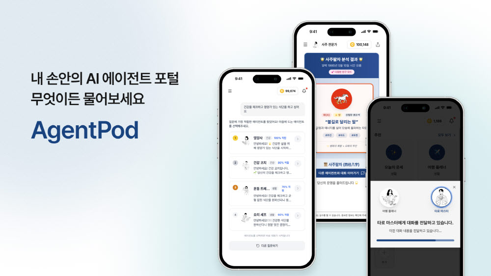 국내 AI 스타트업 라이브데이터가 누구나 쉽고 재미있게 사용할 수 있는 AI 에이전트 통합 플랫폼 ‘에이전트팟(AgentPod)’을 14일 정식 출시했다. 에이전트팟은 다양한 AI 에이전트를 하나의 포털에서 제공하는 B2C 특화 서비스로, 복잡한 프롬프트 작성 없이도 AI 서비스를 이용할 수 있도록 통합형 사용자 경험(UX)을 갖춘 것이 특징이다. 출시와 함께 운세와 사주 정보를 해석해주는 ‘사주 전문가’, 인터랙티브한 체험이 가능한 ‘타로 마스터’ 등 전문 에이전트를 선보였다. 또한 사용자들이 AI와 주고받은 대화를 공유 링크로 배포하거나 숏폼 동영상 콘텐츠로 자동 생성해 SNS에 올릴 수 있도록 공유 기능을 강화했다. 라이브데이터는 향후 여행, 교육, 건강 등 다양한 분야로 서비스를 확장할 계획이다.