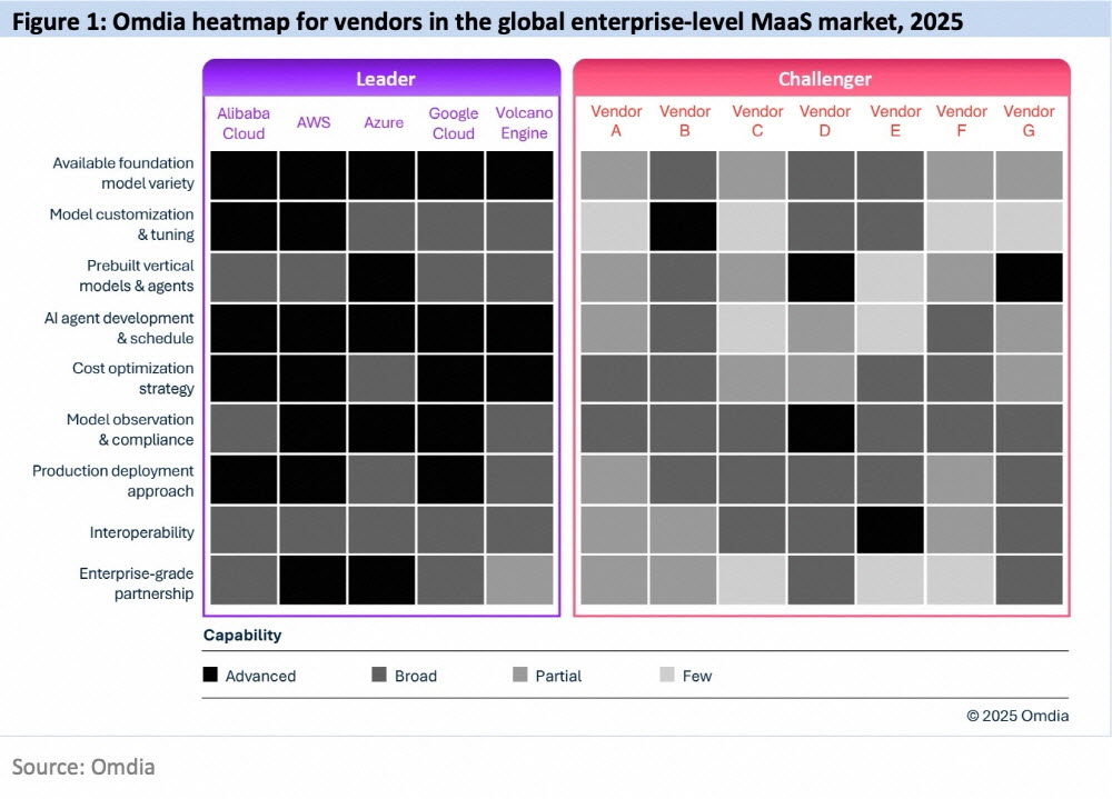 알리바바 클라우드가 글로벌 시장조사기관 옴디아가 발간한 ‘글로벌 엔터프라이즈급 MaaS 시장 분석, 2025’ 보고서에서 ‘리더’로 선정되며 엔터프라이즈 AI 도입 및 확산 지원 역량을 공식적으로 인정받았다. 이번 평가는 기업의 AI 활용 전 주기를 지원하는 알리바바 클라우드의 기술 역량에 초점을 맞췄으며, 특히 풀스택 AI 역량을 기반으로 9개 핵심 역량 중 모델 다양성, 커스터마이징 등 5개 부문에서 최고 등급인 ‘어드밴스드’를 획득했다. 알리바바 클라우드는 자체 개발 Qwen 모델과 PAI 인프라, 모델스튜디오 플랫폼을 통합한 ‘풀스택 AI 서비스 제공업체’로 포지셔닝하며 MaaS 2.0 시대에 기업이 AI 애플리케이션을 안정적으로 구축·운영하도록 돕고 있다. 현재 100만 명 이상의 사용자가 모델스튜디오에서 Qwen 모델을 활용해 80만 개 이상의 AI 에이전트를 생성하는 등 활발한 사용률을 보이고 있다.