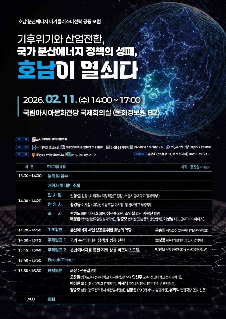 호남, 국가 에너지 전환의 열쇠… 분산에너지 메가클러스터 포럼 2월 11일 개최