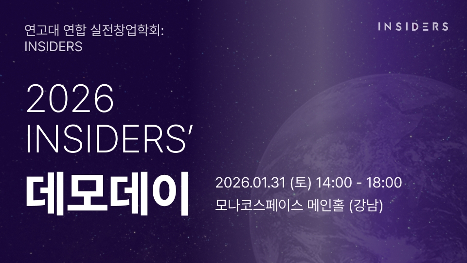 연고대 연합 실전창업학회 인사이더스(INSIDERS)가 제29기 데모데이를 진행한다. ‘We dare to be Different!’라는 슬로건을 내건 인사이더스는 이번 데모데이를 통해 한 학기 동안 준비한 학회원들의 창업 아이템과 사업화 과정을 대중에게 공개한다. 대학생 창업 생태계의 열정과 참신한 시각을 엿볼 수 있는 이번 행사는 서초구 모나코 스페이스에서 열린다.