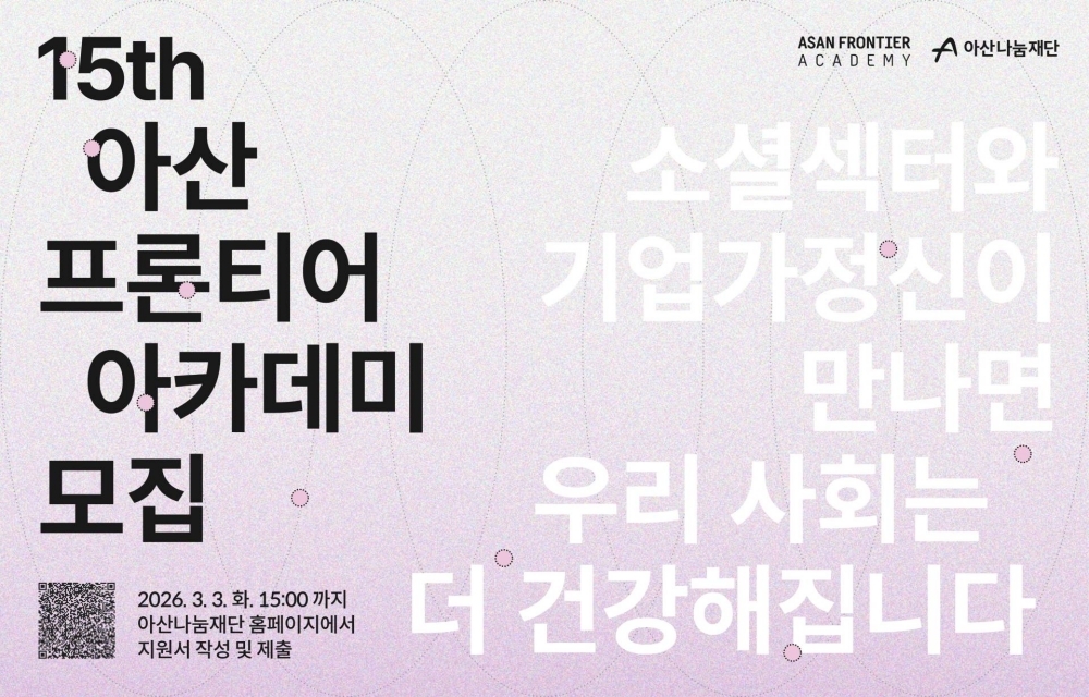 아산나눔재단이 기업가정신을 갖춘 차세대 사회혁신 리더 양성을 위한 ‘아산 프론티어 아카데미’ 15기 수강생을 모집한다. 비영리 분야 리더 및 중간 관리자, 비영리 스타트업 관계자는 물론 사회혁신 활동 의지가 있는 영리 조직 경력 3년 이상 현직자도 지원 가능하다. 본 교육 프로그램은 문제 해결 중심의 약 7개월 과정으로, 참가자들은 기업가정신, 리더십, 경영 역량 등을 체계적으로 훈련하며 소셜 임팩트 확산에 기여하게 된다. 특히, 교육 비용은 전액 재단이 지원하며 해외 선진 기관 탐방 기회도 제공한다. 수강 신청은 1월 27일부터 3월 3일까지 아산나눔재단 홈페이지에서 진행된다. 최종 합격자는 서류 및 면접 심사 후 3월 말에 발표될 예정이다.