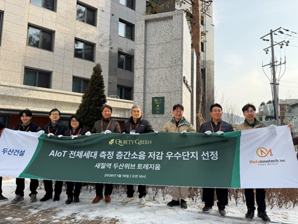 스마트 건축 기술 전문 기업 메타이노텍은 지난 19일 서울 은평구 ‘새절역 두산위브 트레지움’에서 우수단지 선정 기념식을 성공적으로 개최했다. 새절역 두산위브 트레지움은 건축물 완성도와 주거 쾌적성, 특히 최신 공법이 적용된 층간소음 저감 분야에서 전문가들의 높은 평가를 받아 우수단지로 선정됐다. 메타이노텍 조광묵 대표는 “이번 선정은 입주민 자산의 최고 수준 안정성을 입증하는 결과”라고 밝혔다. 두산건설 유동룡 현장소장 역시 “엄격한 법령 준수와 최신 층간소음 저감 기술 적용에 역량을 집중했다”고 강조했다. 이번 기념식을 통해 새절역 두산위브 트레지움은 서울 서북권을 대표하는 주거 명작으로서의 위상을 공고히 했다.