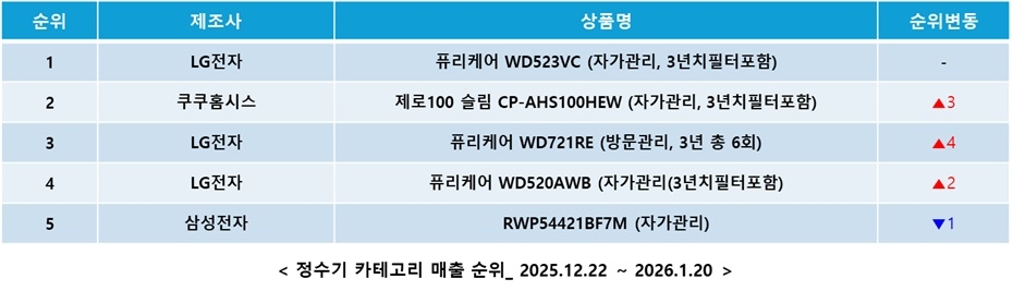 고물가와 경기 침체가 장기화되면서 정수기 구매 트렌드가 월 비용을 지불하는 렌탈 방식 대신 직접 필터를 교체하는 자가관리 제품으로 변화하고 있다. 이커머스 전문기업 커넥트웨이브의 가격비교 서비스 다나와는 최근 정수기 카테고리 매출액이 2025년 12월 22일부터 2026년 1월 20일까지 전년 동기 대비 20% 상승했다고 29일 밝혔다. 이는 유지비 절감과 직접 관리가 용이한 다양한 제품 출시가 맞물린 실속형 소비 트렌드 확산의 영향으로 분석된다. 실제로 같은 기간 다나와 매출 상위 5개 제품 중 4개가 자가관리 정수기였으며, LG전자 퓨리케어 모델과 쿠쿠홈시스, 삼성전자 제품 등이 인기를 끈 것으로 나타났다. 다나와는 고객의 합리적인 구매 환경을 지원하기 위해 세부 검색 기능과 최저가 제공을 강화할 방침이다.