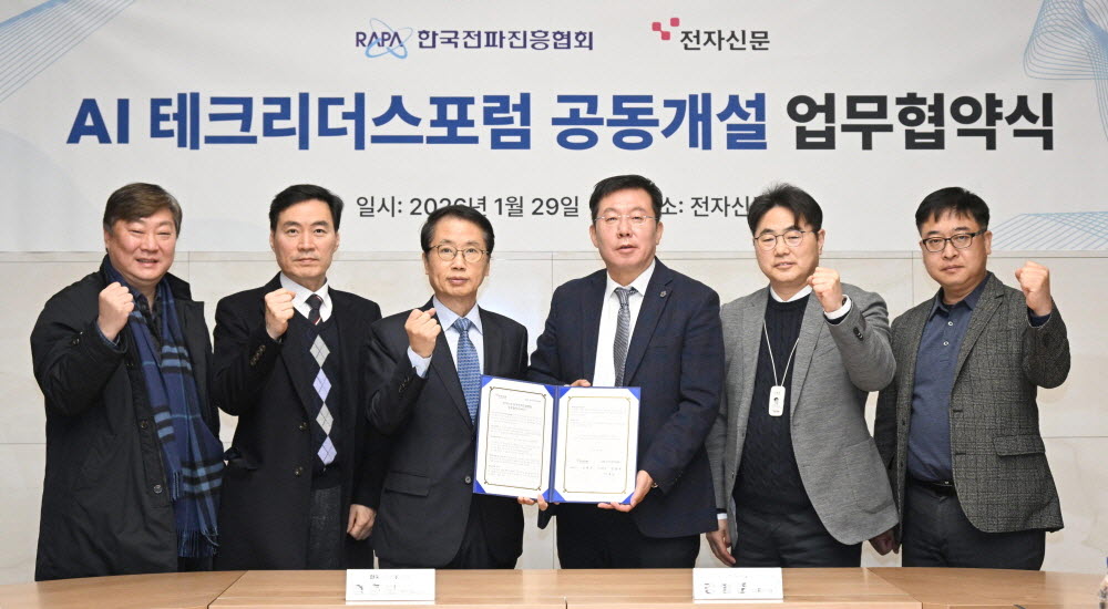 한국전파진흥협회(RAPA)와 전자신문이 29일 서울 서초구 전자신문 본사에서 ‘AI 테크 리더스 포럼’ 공동 개최를 위한 업무협약(MOU)을 체결했다. 양 기관은 이번 협력을 통해 AI 대전환(AX) 시대를 맞아 산업 및 공공 영역의 인공지능 활용 역량을 강화하고, AI 기반의 혁신 전략과 리더십 확산을 위한 협력 체계를 구축하기로 합의했다. 올해로 5회째를 맞는 이 포럼은 오는 3월 9일부터 7월 20일까지 매주 월요일 서울 양재 엘타워에서 진행된다. 기업 최고경영자(CEO) 및 임원, 고위 공무원 등 리더를 대상으로 AI 최신 기술 트렌드를 넘어 경영과 산업 전략 관점에서의 AX 실행 전략을 중점적으로 다룰 예정이다. 포럼은 AI 반도체, 헬스케어, AI 거버넌스 등 다양한 주제로 구성되며, 현재 참가자를 모집 중이다.