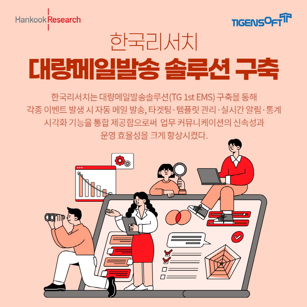 티젠소프트, 한국리서치 대량 메일 솔루션 구축 성공