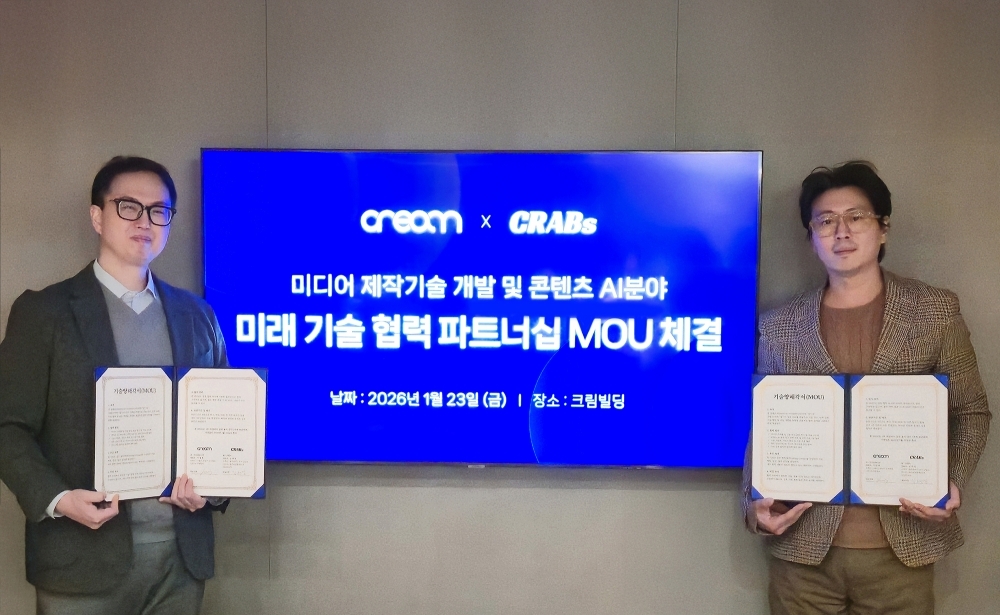 디지털 크리에이티브 에이전시 더크림유니언의 AX Lab이 영상 AI 기업 크랩스와 손잡고 차세대 영상 제작 기술 공동 연구를 위한 업무협약(MOU)을 체결했다. 양사는 미디어 저작 도구와 AI 기술을 결합하여 연구부터 사업화까지 포괄적 협력 체계를 구축하며, 협력 범위는 광고 시장을 넘어 스마트글래스 등 신규 디바이스 영역으로 확대된다. 특히 더크림유니언의 기획 역량과 크랩스의 ‘AI 프로듀서’ 기술을 융합해 실무 활용도가 높은 ‘바이브(Vibe) 미디어 저작 도구’를 고도화할 방침이다. 이는 공간 컴퓨팅 시대에 필요한 스마트글래스 전용 편집 툴 개발과 광고 콘텐츠 자동화 제작 프로세스 도입 등을 통해 차세대 미디어 시장을 선점하려는 전략으로, 베타 서비스는 2025년 상반기에 공개될 예정이다.