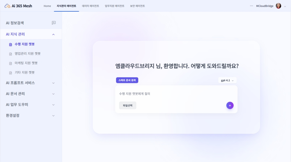AI 통합 업무 플랫폼 전문기업 엠클라우드브리지의 ‘Ai 365 지식관리 에이전트’가 제조, 서비스, 전문직군을 중심으로 구축 문의와 도입이 급증하고 있다. 이 플랫폼은 마이크로소프트 Azure OpenAI 및 Microsoft 365 환경을 기반으로 사내 문서와 데이터를 연계해 지식 검색 및 생성형 AI 답변을 하나의 화면에서 제공하는 기업용 AI 오케스트레이션 솔루션이다. ChatGPT, Gemini 등 멀티 AI 엔진을 지원하면서도 Microsoft Entra ID와 연계한 권한 관리 기능을 통해 문서 보안과 조직별 거버넌스를 동시에 확보할 수 있도록 설계됐다. 엠클라우드브리지는 Ai 365를 통해 기업들의 생성형 AI 도입 시 보안 및 문서 관리 과제를 해소하고 한국형 AI 업무 환경 전환을 적극 지원한다는 방침이다.