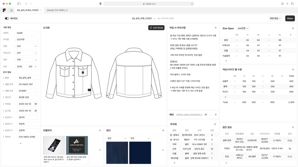 패션 테크 스타트업 패딧이 엑셀과 종이 문서에 의존하던 기존 패션 제조 공정을 웹 기반으로 전환하는 ‘작업지시서·패턴 통합 DX 솔루션’을 공식 출시했다. 이 솔루션은 작업지시서와 패턴 데이터를 웹상에서 하나의 기준 데이터로 통합 관리하여 생산 과정에서 발생하는 반복 수정, 납기 지연, 커뮤니케이션 오류 등 구조적 비효율을 해소하는 데 중점을 뒀다. 특히 해외 바이어와 글로벌 생산 공장 간의 정보 단절 문제를 해결하기 위해 고안됐다. 디자이너가 웹에서 작업지시서를 생성하고 디지털 패턴과 연동하면, 생산 공장은 변경 이력을 즉시 확인하고 적용할 수 있다. 또한 Gerber, YUKA 등 기존 CAD 시스템과 연동되며 다국어 환경을 지원하여 ‘디지털 생산 커뮤니케이션 허브’ 역할을 수행할 것으로 기대된다.