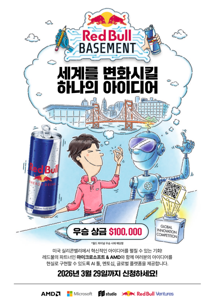 레드불이 글로벌 예비 창업가 지원 프로그램 ‘레드불 베이스먼트 2026’ 참가자 모집을 시작했다. 이 프로그램은 AI 기반 도구와 글로벌 멘토링을 활용해 혁신 아이디어를 프로토타입 또는 MVP로 발전시키는 인큐베이팅 과정으로, 만 18세 이상이면 누구나 참여할 수 있다. 참가 신청은 3월 29일까지 레드불 공식 홈페이지에서 가능하다. 제출된 아이디어는 국내 심사를 거쳐 16팀이 1차 선정되고, 이 중 8팀이 한국 결선에 진출한다. 최종 우승팀은 한국 대표로 미국 실리콘밸리에서 열리는 월드 파이널에 참가해 40여 개국 대표팀과 함께 3일간의 집중 프로그램을 수행한다. 우승팀에게는 10만 달러의 상금과 Microsoft Azure 크레딧, 레드불 벤처스의 후속 지원이 제공된다. 지난해 우승팀은 농업 플랫폼 ‘Agriconnect’로 실리콘밸리 현지 멘토링을 받으며 사업화를 가속한 바 있다. 레드불은 기술 역량과 무관하게 세상을 바꾸려는 열정을 가진 누구에게나 열린 프로그램이라고 강조하며, 올해도 글로벌 파트너들과 함께 운영을 이어간다.