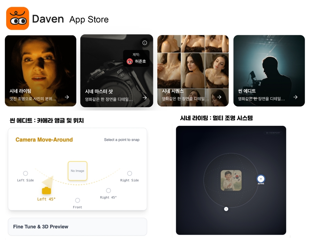 생성형 AI 플랫폼 데이븐AI(DAVEN AI)가 국제 영화제 10관왕을 달성한 허준호 감독의 연출 기법을 코드화한 시네마틱 앱 4종을 출시했다. 데이븐AI는 이번 발표를 통해 전문가의 고유 노하우를 앱으로 만들어 수익을 공유하는 ‘AI판 앱스토어’ 생태계 조성의 시작을 알렸다. 12년간 패션 사업을 하다 AI 감독으로 변신 후 단 3개월 만에 글로벌 성과를 낸 허 감독의 ‘시네마틱 아키텍처’가 플랫폼에 이식되었다. 사용자들은 ‘시네 마스터 샷’, ‘씬 에디트’ 등 4가지 앱을 통해 하이엔드 카메라 질감 구현, 캐릭터 디렉팅, 9컷 시퀀스 제작 등 거장의 연출 DNA를 손쉽게 활용할 수 있게 되었다. 데이븐AI는 전문가의 IP화를 통한 수익 창출과 사용자에게 거장의 도구를 제공하는 가장 진화된 형태의 창작 생태계를 지향하고 있다.