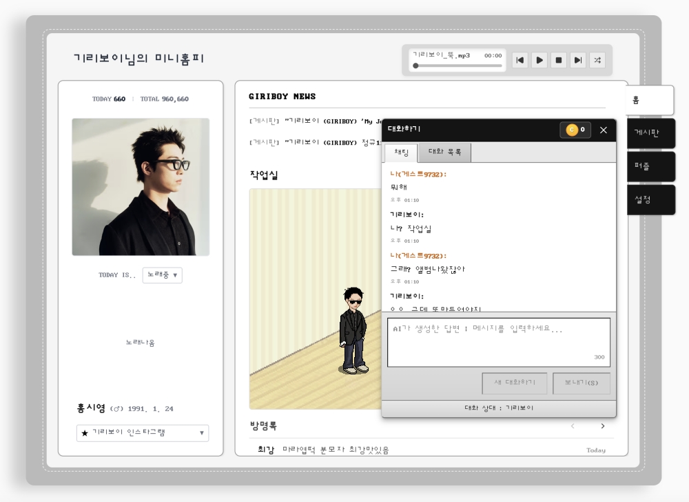 뮤직테크 버시스, AI 온라인 팬미팅 서비스 ‘기리보이님의 미니홈피‘ 론칭
