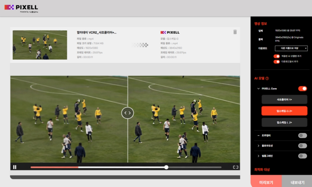 콘텐츠 AI 솔루션 기업 포바이포(4BY4)가 스포츠 채널 SPOTV의 레거시 스포츠 아카이브 콘텐츠에 AI 화질 개선 솔루션 ‘AI 픽셀(AI PIXELL)’을 적용하며 과거 스포츠 IP의 재수익화 모델 구축에 나섰다. 포바이포는 23일 AI 픽셀이 과거 명경기 및 하이라이트 영상의 인터레이스 잔존과 화질 열화 등 문제를 해결한다고 밝혔다. 특히 원본 기반 추론형 CNN 구조를 사용해 노이즈와 열화 영역을 정교하게 복원하면서도 원본의 질감을 유지하고 콘텐츠 왜곡을 최소화하는 것이 특징이다. 회사는 이번 스포츠 아카이브 사례를 시작으로 AI 픽셀의 적용 범위를 방송, OTT(온라인 동영상 서비스), 글로벌 FAST(광고 기반 무료 스트리밍) 유통 환경까지 확대할 계획이다.