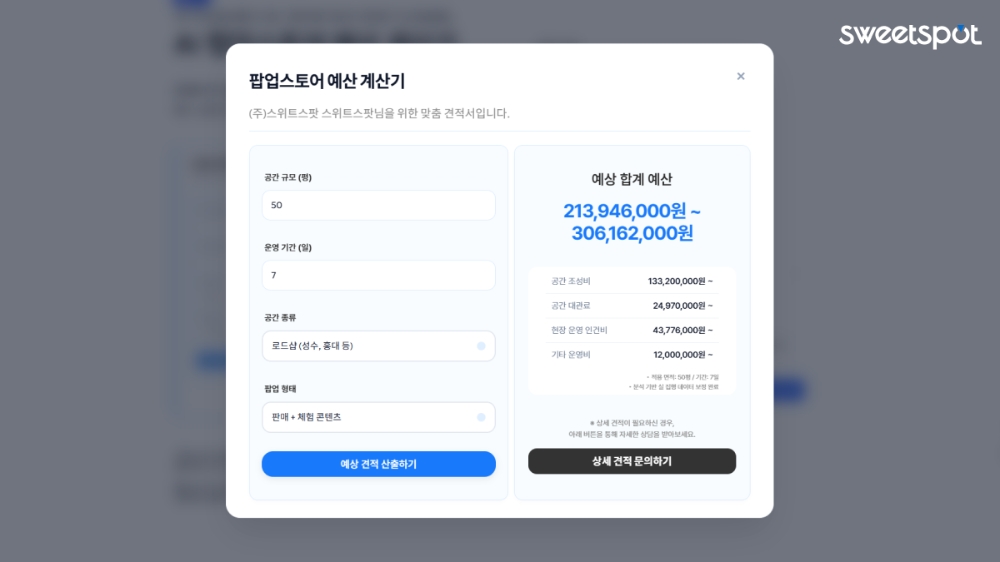 스위트스팟, AI ‘팝업스토어 예산 계산기‘ 베타 출시
