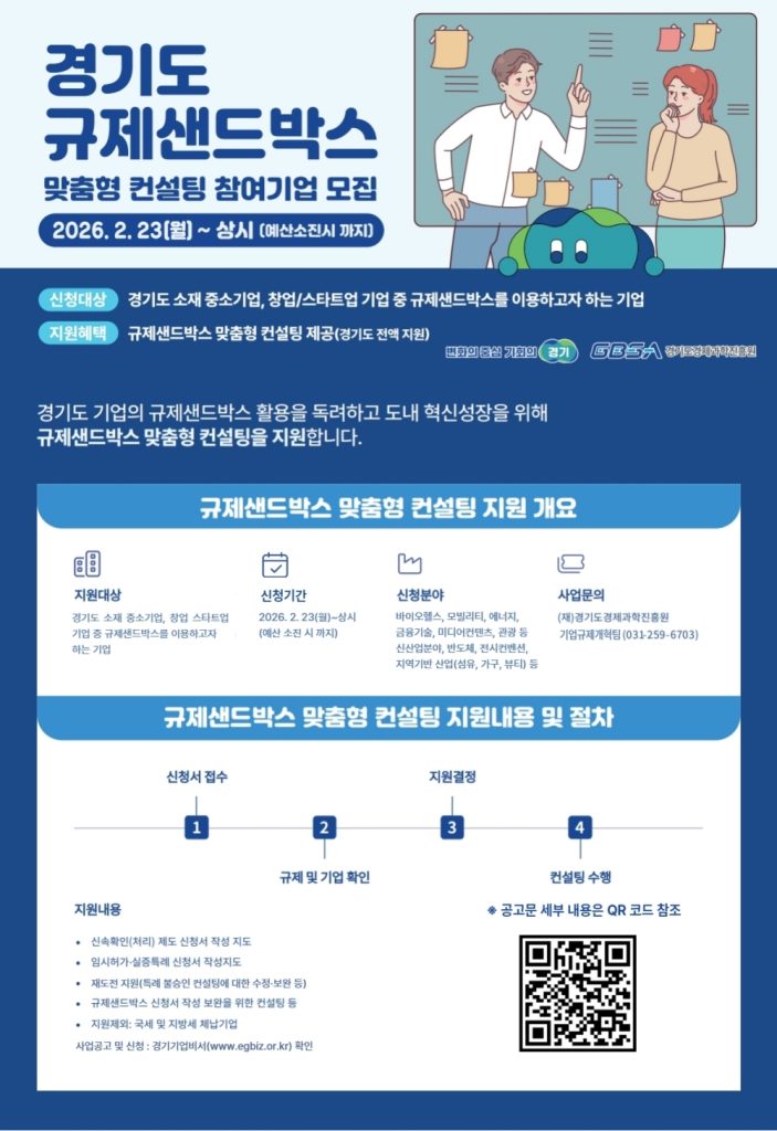 경기도, 규제샌드박스 활용해 중소기업 사업화 지원 확대