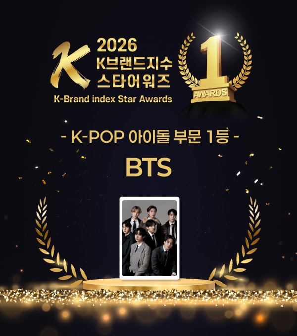 빅데이터 평가 기관인 아시아브랜드연구소는 ‘2026 K-브랜드지수 스타어워즈’ K-POP 아이돌 부문 대상에 방탄소년단(BTS)이 최종 선정됐다고 5일 발표했다. 이번 시상은 2025년 1월부터 2026년 2월까지의 온라인 빅데이터 126억 건 분석에 팬덤 투표 플랫폼 ‘스타덤’의 공식 투표 결과를 합산해 이뤄졌다. BTS는 긴 공백기에도 불구하고 압도적인 글로벌 장악력으로 ‘K팝의 대체 불가한 상징’임을 입증하며 영예를 안았다. TOP10에는 스트레이 키즈(2위), 세븐틴(3위) 등이 이름을 올린 가운데, 제로베이스원(4위)과 라이즈(8위) 등 5세대 보이그룹의 약진과 버추얼 아이돌 플레이브(5위)의 상위권 진입이 대중문화의 새로운 변화를 증명했다는 분석이다. 아시아브랜드연구소 측은 팬덤의 실질적 투표 참여를 반영함으로써 시상의 변별력을 높였다고 평가했다.