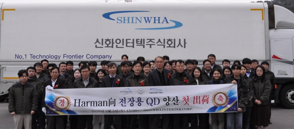 신화인터텍이 전자재료 광학필름 기술력을 바탕으로 자동차 소재 시장에 본격 진입하며 새로운 이정표를 세웠다. 이 회사는 5일 충남 천안 본사에서 자동차 디스플레이용 QD(Quantum Dot) 시트의 글로벌 전장 기업 하만(HARMAN)향 첫 출하식을 개최했다고 밝혔다. 이번에 출하된 QD 시트는 로컬 디밍 기술과 결합해 OLED 수준의 고화질을 구현하는 것이 특징이며, 영하 40도에서 영상 85도의 차량용 내구 규격을 통과하며 신뢰성을 확보했다. 신화인터텍은 하만 공급망을 통해 글로벌 완성차 탑재를 앞두고 있으며, 향후 AR HUD 광학 모듈, 이차전지 소재 등과의 연계를 통해 모빌리티 소재 전문 기업으로 사업 구조를 강화해 나갈 방침이다.