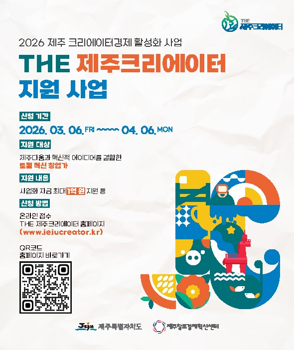제주창조경제혁신센터가 제주특별자치도와 손잡고 제주의 자원을 기반으로 혁신적인 브랜드를 만들 로컬 창업가를 모집한다. ‘THE 제주크리에이터 지원사업’은 선정 기업을 지역을 대표하는 앵커기업으로 육성하는 것이 목표다. 오디션 결과에 따라 최대 1억 원의 사업화 자금과 비즈니스 모델(BM) 고도화, 스케일업 등이 차등 지원된다. 모집 유형은 글로벌 경쟁력을 갖춘 ‘글로컬 앵커 유형’과 지역 경제 발전에 기여할 ‘제주 앵커 유형’ 두 가지로 진행된다. 타 지역 기업도 협약 후 1개월 이내 제주로 사업장을 이전하고 지역 인재 1명 이상을 고용하면 신청할 수 있다. 접수는 3월 6일부터 4월 6일 오후 6시까지 공식 홈페이지를 통해 온라인으로 가능하다. 지원자를 위한 온라인 및 오프라인 사업설명회도 총 4회 개최될 예정이다.