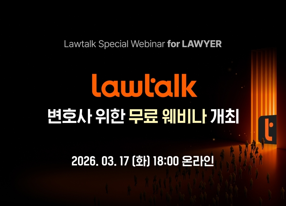리걸테크 기업 로앤컴퍼니가 변호사의 사건 수임 역량 강화를 위한 ‘로톡 무료 웨비나’를 최초로 개최한다. 로앤컴퍼니는 10일 법률 종합 포털 로톡 활용 노하우와 실전 수임 전략을 공유하는 ‘로톡 스페셜 웨비나 포 로이어’를 오는 17일 오후 6시 온라인에서 실시간 진행한다고 밝혔다. ‘월 160만 의뢰인을 내 고객으로 만드는 실전 수임 전략’을 주제로, 13년 차 심희정 변호사가 실 사례 기반의 노하우를 공개한다. 로앤컴퍼니 정재성 부대표도 로톡 활용법을 안내한다. 참가비는 무료이며, 변호사 누구나 로톡 홈페이지를 통해 16일까지 신청할 수 있다.