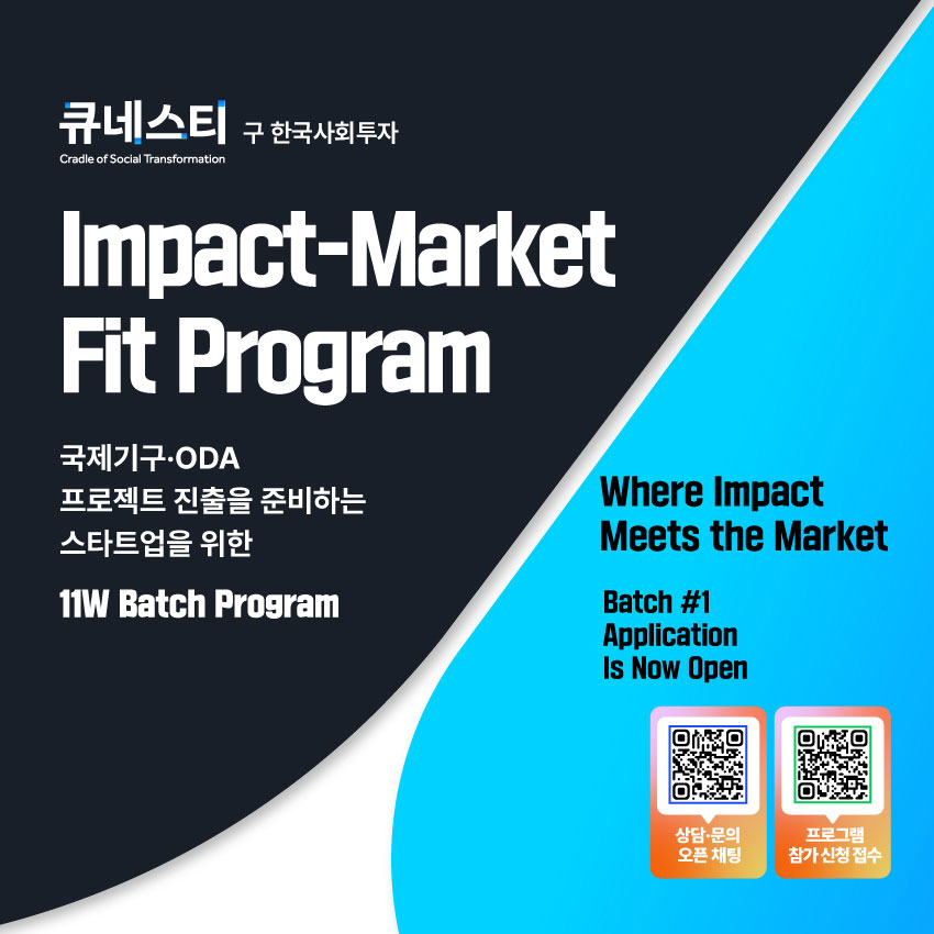임팩트 투자·액셀러레이팅 기관 큐네스티가 개발협력(ODA) 시장과 국제기구 프로젝트 참여를 준비하는 스타트업을 위한 전문 프로그램 ‘Impact-Market Fit Program’을 새롭게 선보였다. 이 프로그램은 기술 기반 기업이 개발도상국 시장에 진출하거나 국제 프로젝트 제안에 참여할 수 있도록 글로벌 전략과 임팩트 비즈니스 모델을 체계적으로 설계하는 데 초점을 맞춘다. 최근 국제개발 분야에서 스타트업 기술을 활용한 사회문제 해결 수요가 증가하고 있으나, 많은 기업이 국제 프로젝트 구조나 현지 파트너십 구축 방식에 대한 이해 부족으로 어려움을 겪고 있는 점을 반영했다. 프로그램은 ODA 시장 구조 이해, 글로벌 임팩트 모델 설계, 국제 프로젝트 제안 전략, 개발도상국 진출 전략 등을 기업별 수준에 맞춰 제공하며, 단순 교육이 아닌 실전형 지원을 지향한다. 큐네스티는 상담 과정에서 해외 진출 관련 정부 지원 프로그램 연계도 함께 검토할 계획이다. 이번 프로그램은 개발도상국 시장 진출을 준비하는 스타트업과 국제기구 프로젝트 참여를 희망하는 기업 등을 대상으로 하며, 사전 상담 신청은 4월 6일까지 진행된다.