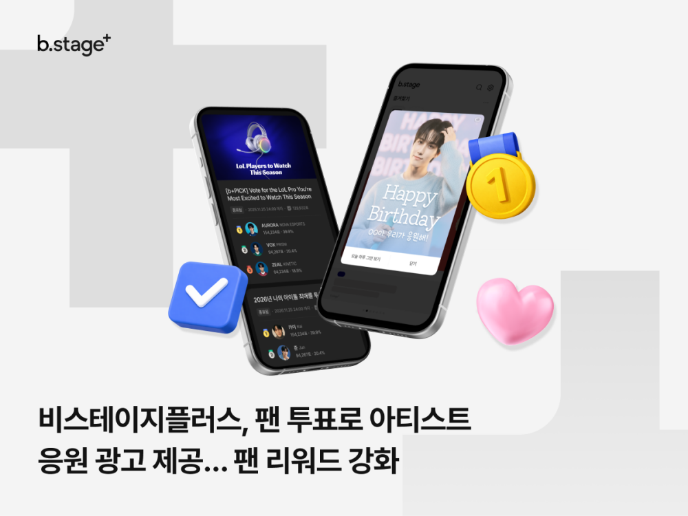 글로벌 팬덤 비즈니스 기업 비마이프렌즈의 팬 투 팬 플랫폼 ‘비스테이지플러스’가 팬 투표 코너 ‘비플픽’을 통해 팬 리워드를 확대한다. 3월 비플픽에서는 LCK 선수 T1 도란이 1위, 한화생명e스포츠 구마유시가 2위를 차지하며 총 1,200만 표 이상의 투표를 기록했다. 1, 2위 선수에게는 비스테이지 앱 내 배너 노출 혜택이 주어진다. 팬들은 플랫폼 내에서 응원 광고 상품을 직접 구매하는 등 능동적인 팬덤 활동을 이어가고 있다. 또한, 4월 생일 아티스트 대상 투표부터는 네이버 팬덤광고, 생일상 협찬 등 추가적인 특별 리워드가 제공돼 팬들의 참여를 더욱 독려할 전망이다.