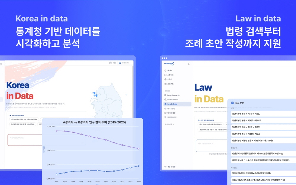 마인드로직, 공공 데이터 분석 AI ‘코리아인데이터‘·’로인데이터‘ 출시