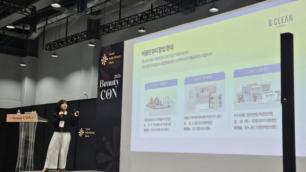 박미리 현대백화점 비클린(B.CLEAN) 선임은 26일 마곡 코엑스에서 열린 2026 서울인디뷰티쇼 뷰티콘에서 치열한 뷰티 시장에서 살아남는 오프라인 흥행의 핵심 지표로 브랜드 진정성을 꼽았다. 박 선임은 이날 실패 없는 뷰티 팝업: 비클린이 분석한 오프라인 흥행의 핵심 지표를 주제로 300개 팝업을 진행하며 현장에서 직접 검증한 사례들을 바탕으로 오프라인 팝업의 성패를 가르는 요소들을 제시했다.