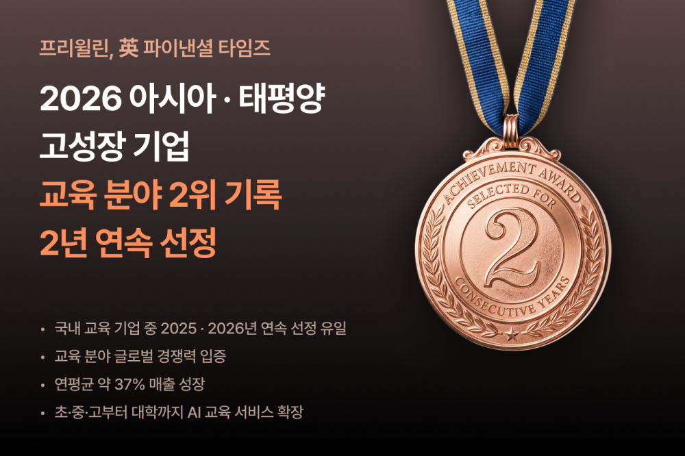 AI 기반 교육 솔루션 기업 프리윌린이 영국 파이낸셜 타임즈와 스태티스타가 공동 발표한 ‘2026 아시아·태평양 고성장 기업’에 2년 연속 선정됐다. 아시아·태평양 지역 500대 기업을 선정하는 이 명단에서 프리윌린은 교육 분야 11개 선정 기업 중 2위를 차지했으며, 국내 교육 기업으로는 유일하게 이름을 올렸다. 2021년부터 2024년까지 연평균 약 37%의 견고한 매출 성장세를 기록한 프리윌린은 AI 수학 문제은행 ‘매쓰플랫’ 등을 통해 초·중·고부터 대학까지 교육 전반에서 영향력을 확대 중이다. 권기성 대표는 “기술 혁신과 교육적 가치가 시장에 증명된 결과”라며 글로벌 에듀테크 선도 기업으로 자리매김할 것임을 밝혔다.