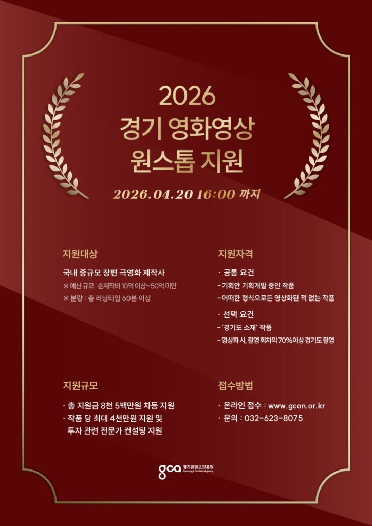 경기도가 지역 기반 영화 제작을 체계적으로 육성하기 위해 ‘경기 영화영상 원스톱 지원’ 사업 공모를 시작했다. 이번 사업은 10억~50억 원 규모의 중형 영화 가운데 경기도를 핵심 배경으로 삼는 작품을 대상으로 하며, 기획부터 제작·상영까지 이어지는 2개년 지원 체계를 갖춘 것이 특징이다. 2026년에는 트리트먼트 단계의 프로젝트 3편을 선정해 기획개발을 지원하고, 이 가운데 한 작품을 2027년 제작 지원 대상으로 확정해 예산을 집중 투입한다. 완성 이후에는 배급과 상영까지 연계해 실질적인 성과 창출을 목표로 한다. 총 8억5천만 원 규모의 올해 공모는 전문가 컨설팅도 함께 제공하며, 경기도 소재·인물·역사 등을 전면적으로 다루거나 도내 촬영 비중이 70% 이상인 작품이 지원 대상이다. 접수는 4월 20일 오후 4시까지 온라인으로 진행된다.