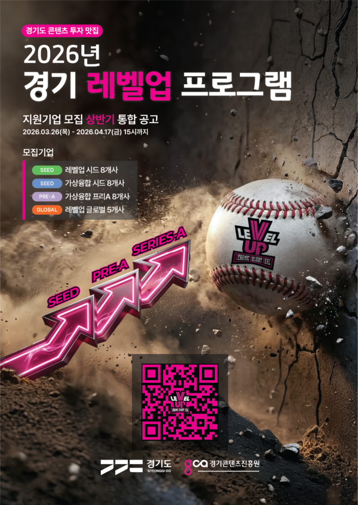 경기콘텐츠진흥원이 도내 콘텐츠 및 가상융합 분야 스타트업을 대상으로 ‘2026 경기 레벨업 프로그램’ 참여 기업 모집을 시작했다. 접수 기간은 3월 26일부터 4월 17일 오후 3시까지이며, 총 29개 기업을 단계별로 선발한다. 선발 분야는 초기 투자 단계의 레벨업 시드와 가상융합 시드, 프리A 단계의 가상융합 프리A, 해외 진출을 목표로 한 레벨업 글로벌로 구성된다. 선정 기업은 성장 단계에 맞춘 액셀러레이팅과 함께 연내 최대 10억 원 규모의 직접 투자 및 후속 투자 연계를 지원받는다. 프로그램 운영은 씨엔티테크, 킹고스프링, 더넥스트랩이 맡아 총 22억 원 이상의 투자를 확약한 상태다. 경콘진은 4월 10일 사업 설명회를 열어 지원 절차를 안내할 예정이며, 이번 모집을 통해 유망 기업의 스케일업과 글로벌 진출 기반을 강화한다는 목표다.