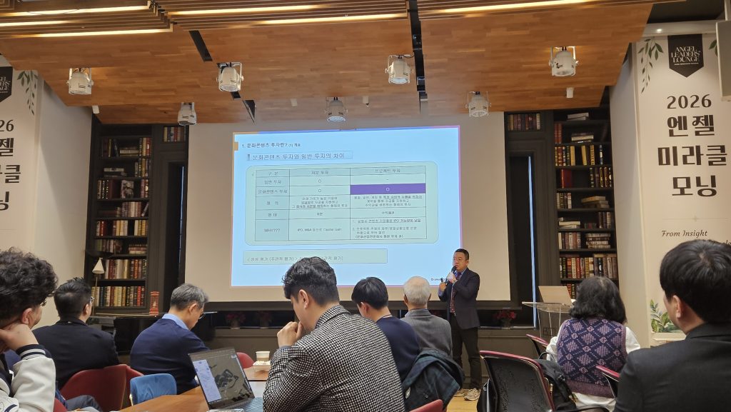 엔젤리더스라운지는 한국엔젤투자협회가 올해부터 본격화한 멤버십 프로그램으로 회원 간 네트워킹, 투자 전문역량 강화를 위한 강연, 유망 투자사 발굴을 위한 IR 등을 정기적으로 추진한다. 이날 처음 열린 엔젤미라클모닝은 산업 인사이트 공유와 친목 교류를 위한 조찬 모임으로 ‘아기상어’로 유명한 핑크퐁컴퍼니의 콘텐츠 투자 전문 CVC 스마트스터디벤처스가 K팝·게임·드라마·유튜브·공연 등 장르를 망라한 투자 경험을 토대로 콘텐츠 투자 인사이트를 전했다.