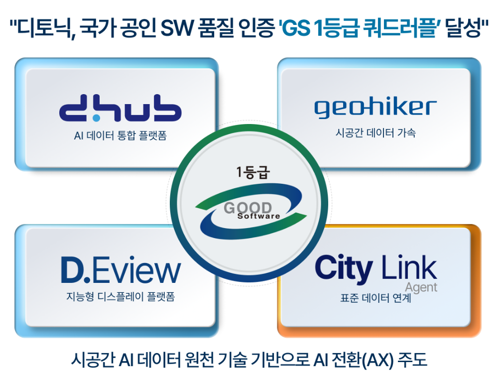 AI 데이터 플랫폼 전문 기업 디토닉이 핵심 솔루션 4종에 대해 국가 공인 최고 소프트웨어 인증인 ‘GS인증 1등급’을 획득하며 기술 경쟁력을 입증했다. 최근 데이터 연계 솔루션인 ‘디닷허브 시티링크 에이전트’가 1등급을 인증받았으며, 이는 기존 ‘지오하이커’, ‘디닷허브’, ‘디닷이뷰’에 이은 4번째 쾌거다. 이로써 디토닉은 복잡한 데이터를 실시간으로 수집, 가속, 분석하고 표준화된 방식으로 전송하는 엔드투엔드(End-to-End) AI 데이터 파이프라인 구축의 기술적 완결성을 확보했다. 디토닉은 이 4대 핵심 기술을 기반으로 스마트시티, 스마트팩토리 등 초연결성이 요구되는 산업 전반에 ‘유니버설 데이터 인터페이스’를 제공하여, AI 도입 속도를 높이는 핵심 인프라 역할을 주도할 계획이다.