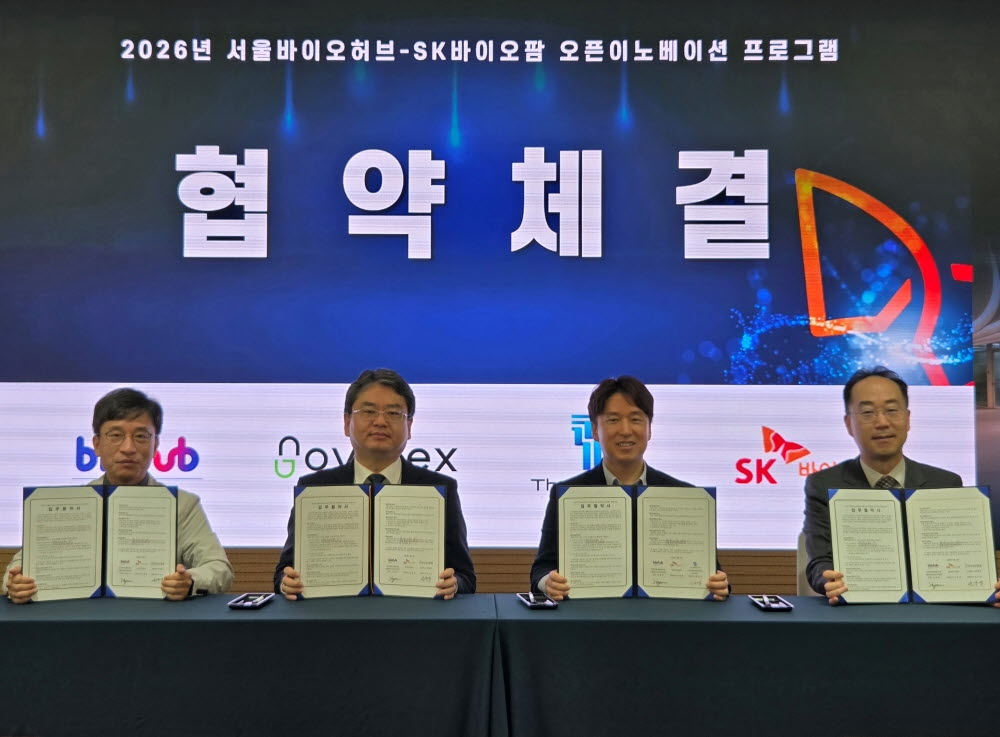 서울특별시 바이오 창업 플랫폼 서울바이오허브와 국내 대표 제약사 SK바이오팜이 ‘오픈 이노베이션 프로그램’의 첫 기수 협력기업으로 노보렉스와 쓰리브룩스테라퓨틱스 2개사를 선정하고 협약식을 개최했다. 이번 협약은 혁신 기술을 보유한 바이오 창업기업 육성에 민관이 공동으로 협력한다는 점에서 의미가 크다. 선정 기업들은 1년간 SK바이오팜과의 기술실증, 공동연구 검토, 개발 전략 고도화 등의 집중 지원을 받게 되며, 서울바이오허브는 입주 혜택과 맞춤형 성장 지원을 제공한다. SK바이오팜은 서울바이오허브 내에 협력센터를 개소하여 선정 기업과의 실무 협업 거점으로 활용할 계획이다. 양 기관은 유망 스타트업이 SK바이오팜의 글로벌 신약개발 경험을 바탕으로 실질적인 성장 기회를 확보하고 글로벌 바이오텍으로 도약하도록 지원을 지속할 방침이다.