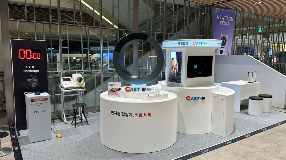 스카이랩스가 반지형 혈압계 ‘카트 비피(CART BP)’를 선보이며 소비자 접점 확대에 나섰다. 회사는 3일부터 16일까지 현대백화점 판교점 ‘NEW TECH FESTA’ 행사장에서 브랜드 최초 오프라인 팝업스토어를 운영한다. 이번 팝업은 카트 비피를 직접 착용해보고 전용 앱을 통해 혈압 데이터 관리 방식을 확인하는 체험형 공간으로 구성되었다. 체험존, 이벤트존, 상담존에서는 제품 시연, 참여형 게임, 현장 단독 구매 혜택 및 상세 상담 등이 제공된다. 특히 구매 고객을 대상으로 호텔 숙박권 증정 등 다양한 이벤트를 진행한다. 스카이랩스 이병환 대표는 “카트 비피의 편의성과 기술력을 직접 소개하고, 전 연령대의 소비자들이 웨어러블 혈압 모니터링 기술을 경험할 수 있도록 기대한다”고 밝혔다.