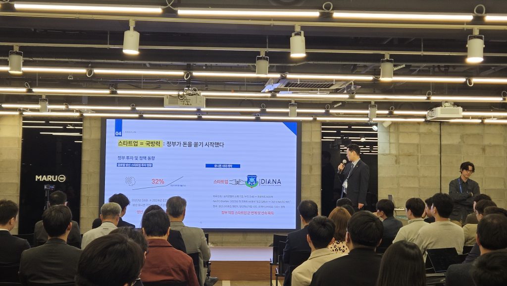 행사에서는 전쟁의 룰이 바뀌면서 나타난 방산 시장 체제 변화에 대한 논의도 이어졌다. 이기진 메쎄이상 본부장은 “우크라이나 전쟁과 미국-이란 전쟁을 거치며 500달러짜리 드론이 400만 달러짜리 전차를 격파하는 비용 비대칭 문제가 부각됐고 더 싸고 빠르게 많이 만드는 쪽이 이기는 패러다임으로 전환됐다”고 언급했다. 소형 무인기가 급부상하고 대드론 기술 개발이 본격화됐으며 전차 같은 복합 기갑 장비들이 무인 플랫폼으로 전환되기 시작하면서 기존 방산 체계만으로는 한계가 나타나 스타트업에게도 시장이 열렸다는 설명이다. 이에 글로벌 방산 스타트업 투자는 4년 만에 4배 증가했고 방산 유니콘 기업도 10개 이상 탄생했다. 미국, 나토, 한국 등 각국 정부가 스타트업과 군을 직접 연계하는 구조를 만들고 있는 상황이다.
