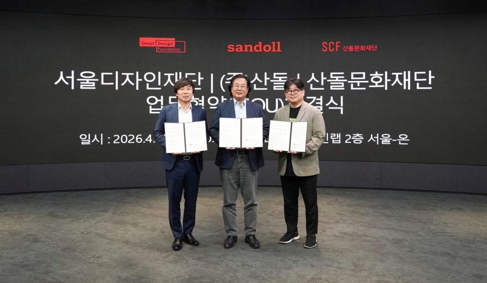 AI 콘텐츠 플랫폼 기업 ㈜산돌과 산돌문화재단이 서울디자인재단과 K-디자인의 글로벌 경쟁력 강화를 위한 3자 업무협약(MOU)을 체결했다. 지난 4월 15일 동대문디자인플라자(DDP)에서 진행된 이번 협약은 실무 중심의 디자인 생태계 확장과 글로벌 경쟁력 제고를 목표로 추진됐다. 주요 협력 사업으로 오는 10월 개최되는 \<서울디자인위크 2026\> 기간 중 ‘실무 디자이너를 위한 컨퍼런스: 산돌 사이시옷 2026’을 공동으로 개최한다. 해당 컨퍼런스는 타입디자인을 기반으로 제품, 패션, 그래픽 등 디자인 전 분야의 실무 인사이트와 글로벌 트렌드를 공유하며 산업 전반의 혁신을 이끌 예정이다.