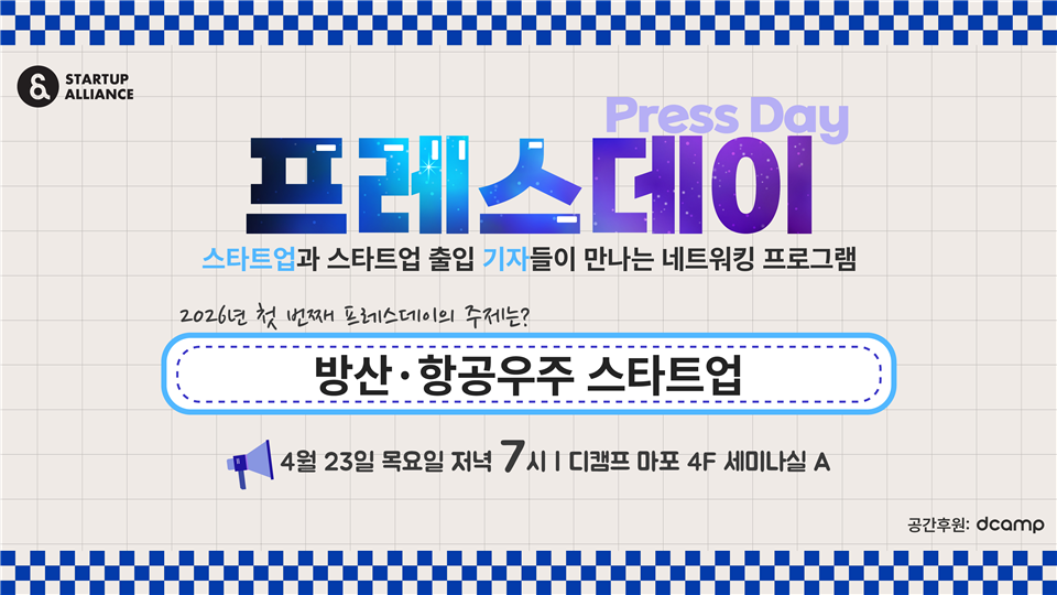 특정 산업 분야의 스타트업과 해당 분야 출입 기자들이 소통하는 네트워킹 행사다. 이번 회차는 방산 및 항공우주 분야를 주제로 열리며, 평소 만나기 힘든 미디어 관계자들과 자유롭게 의견을 나누고 교류할 수 있는 네트워킹 기회를 제공한다.