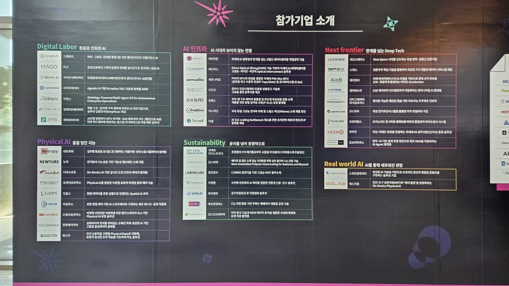 전시 부스 내 섹션도 달라졌다. 디지털레이버(Digital Labor), 피지컬AI(Physical AI), AI 인프라(AI Infra), 서스테이너빌리티(Sustainability), 넥스트프론티어(Next Frontier), 리얼월드AI(Real World AI) 등 AI 중심으로 분야를 재편하고 41개 스타트업을 소개했다.