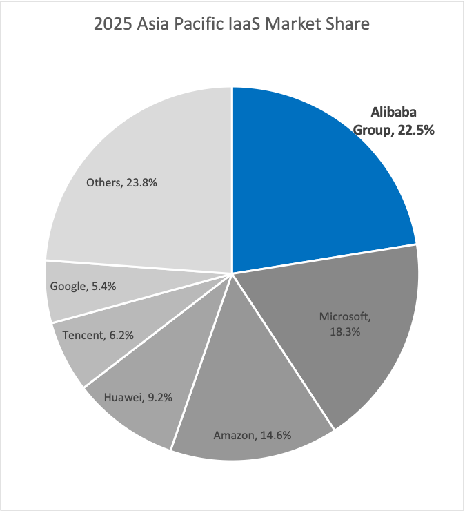 알리바바 클라우드가 가트너 보고서를 인용해 2025년 매출 기준 아시아태평양 지역 IaaS(Infrastructure-as-a-Service) 시장에서 최대 사업자 지위를 재확인했다. 알리바바 클라우드의 아태지역 시장점유율은 2024년 20.8%에서 2025년 22.5%로 상승하며 입지를 강화했다. 이러한 성과는 AI 최적화 인프라에 대한 지속적인 투자와 기업 고객의 AI 수요에 적극적으로 대응한 전략의 결과로 풀이된다. 알리바바는 중국과 홍콩에서 1위를 유지하고 인도네시아에서 순위가 상승하는 등 주요 아시아 시장에서 성장세를 이어갔으며, 글로벌 IaaS 시장에서도 4위를 유지하며 점유율을 7.7%까지 끌어올렸다.
