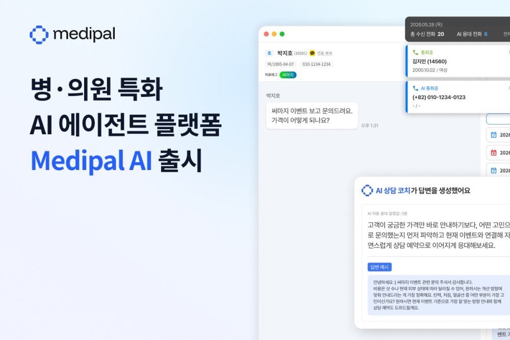 디지털 헬스케어 스타트업 메디팔이 병의원 운영에 최적화된 AI 에이전트 플랫폼 ‘메디팔 AI’를 23일 공식 출시했다. 이 플랫폼은 기존 인력을 대체하기보다 내부 직원의 업무 역량을 보조하고 강화하는 방향으로 설계된 것이 특징이다. 초기에는 상담 분야에 중점을 두고 ‘AI 상담 코치’, ‘AI 글로벌 코디네이터’, ‘AI 콜 매니저’ 등 3가지 핵심 기능을 우선 선보였다. 메디팔은 지난 5년간 500개 이상의 병의원에서 150만 명 이상의 환자 관리 경험을 통해 축적한 2천만 건 이상의 상담 데이터를 기반으로 AI를 구현했다. 이를 통해 병의원은 상담 공백으로 인한 예약 손실을 줄이고 전반적인 운영 효율성을 높일 수 있을 것으로 기대된다. 메디팔 강종일 대표는 의료진과 AI 에이전트가 유기적으로 협업하는 워크스페이스 구축을 통해 병의원 운영 혁신 모델을 제시하겠다고 밝혔다.