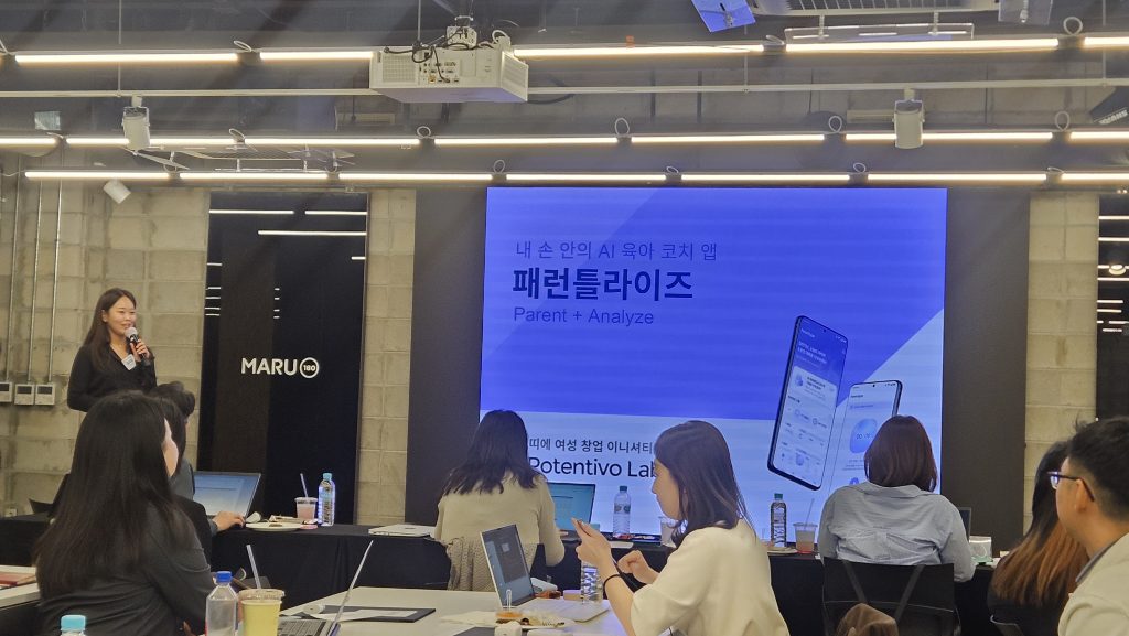 그로스 트랙 대상은 포텐티보랩에게 돌아갔다. 포텐티보랩은 가정 내 대화를 AI로 분석해 맞춤형 양육 코칭을 제공하는 앱 ‘패런틀라이즈’를 개발한다. 타깃은 만 1~8세 자녀를 둔 양육 스트레스가 높은 부모로 개인화된 무료 정보와 전문 대면 상담 사이의 공백을 AI로 채운다. 부모가 아이와의 일상 대화를 앱에 녹음하면 STT 기술로 텍스트 변환 후 아이 기질·부모 양육 태도 데이터와 결합해 맞춤 리포트와 실천 미션을 생성한다. 아동 발달 전문가가 최종 검수하는 휴먼 인 더 루프 구조로 신뢰도를 높인 것이 차별점이다. 수익 모델은 월 5회 이용 기준 16만 원의 B2C 구독제이며, 올해 공식 채널 팔로워 10만 명과 유료 전환 매출 1,500만 원 달성을 목표로 하고 있다.