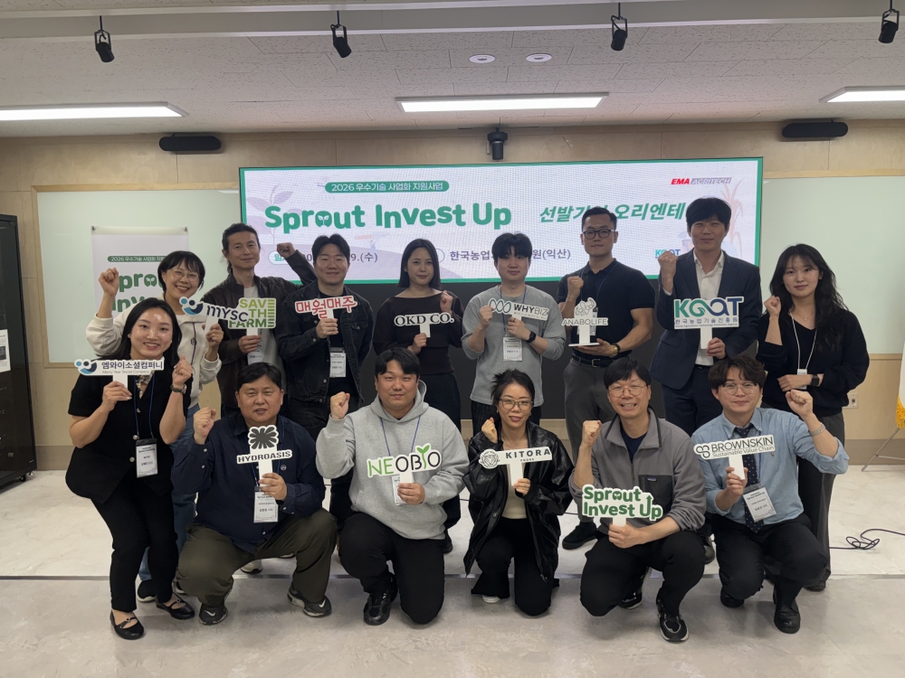 한국농업기술진흥원과 엠와이소셜컴퍼니(MYSC)가 공동으로 추진하는 ‘2026 우수기술 사업화 지원사업 SPROUT Invest Up’이 최종 선발된 10개 기업을 대상으로 오리엔테이션을 열고 본격적인 지원에 들어갔다. 이번 사업은 농산업 분야 유망 스타트업의 기술 사업화를 촉진하기 위해 기획됐으며, 청년기업을 우대해 전국에서 선발된 기업들이 참여한다. 선정된 기업에는 역량 진단과 마일스톤 설정, 특화 교육, 1:1 멘토링, IR 컨설팅, 데모데이 등 전주기 프로그램이 제공된다. 또한 MYSC의 직접 투자 1억 원과 기업당 지식재산권 출원 비용 100만 원이 지원돼 사업화 기반을 강화한다. 네오바이오, 매월매주, 브라운스킨, 세이브더팜즈, 아나볼라이프, 와이비즈, 오키드 컴퍼니, 젠틀파머스, 키토라푸드, 하이드로오아시스 등 최종 선정된 기업들은 AI 기반 스마트 농업, 바이오 소재, 맞춤형 푸드테크 등 다양한 혁신 모델을 통해 농산업의 디지털 전환과 지속가능성을 선도할 것으로 기대된다.