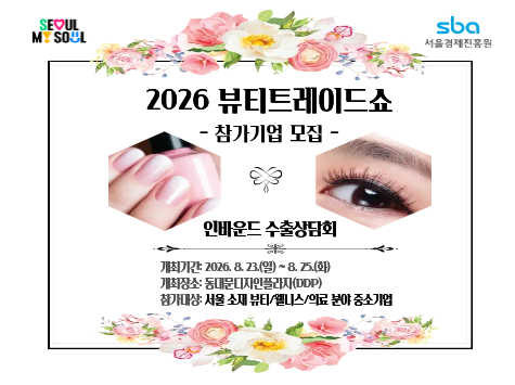서울경제진흥원(SBA)이 오는 5월 15일까지 ‘2026 뷰티트레이드쇼’ 수출상담회에 참여할 서울 소재 중소기업을 모집한다. 이번 행사는 8월 23일부터 25일까지 동대문디자인플라자(DDP)에서 열리며, 수출상담회와 제품 쇼케이스, 라이브커머스, 수출컨설팅, 네트워킹 등 다양한 프로그램으로 구성된다. 지난해 행사에서는 43개국 132개 바이어가 참여해 224개 기업과 872건의 상담을 진행, 약 177억 원 규모의 현장 계약을 성사시켰다. 특히 동남아 인플루언서를 활용한 라이브커머스가 큰 호응을 얻으며 추가 판매로 이어졌다. 올해 모집 대상은 색조·스킨케어·헤어케어·바디케어·향수·미용기기 등 뷰티 관련 제품을 보유한 기업으로, 최종 선정된 기업은 해외 바이어와의 매칭을 통해 수출 상담 기회를 제공받는다. SBA는 글로벌 시장 진출을 원하는 서울 중소기업의 적극적인 참여를 기대하며, K-뷰티의 위상을 이어갈 수 있도록 지원할 계획이다.