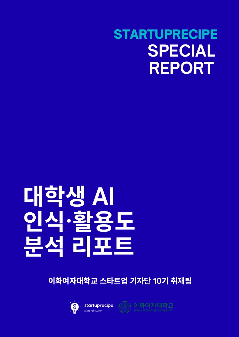 이에 이화 스타트업 기자단 10기는 스타트업레시피와 협업해 ‘대학생 AI 인식 및 활용도 실태조사’를 실시했다. 대학생 69명이 참여한 이번 온라인 설문은 AI 사용 현황과 학업 활용, 정부 AI 정책 인식, AI 스타트업에 대한 인식 등 26개 심층 질문으로 구성됐다.
