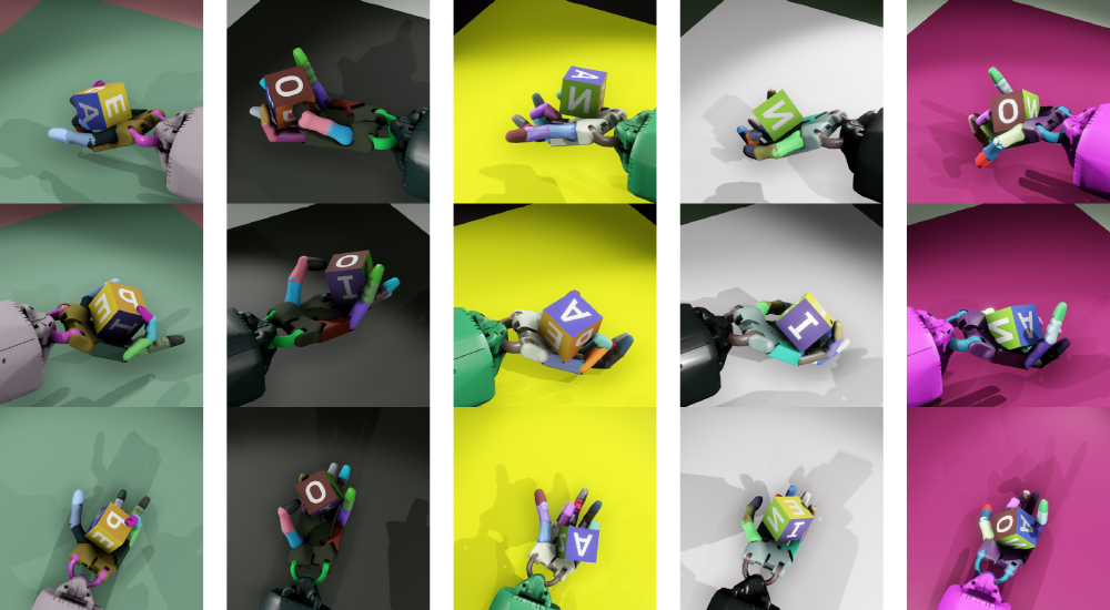 다크틸은 물리 시뮬레이션 엔진인 MuJoCo를 이용해 로봇 시뮬레이텨를 만들고 현실에서 로봇팔을 움직이기 전에 가상 공간에서 로봇팔을 움직여가며 강화학습을 진행해왔다. 학습을 할 때에는 매번 미묘하게 다른 조건을 설정하는 도메인 임의추출(domain randomization)이라는 기술을 이용했다고 한다. 다른 조건이란 정육면체와 배경 색상이 다를 뿐 아니라 로봇팔 동작 속도와 입방체의 무게, 로봇팔 사이에 일어나는 마찰계수 등 모든 요소를 다크틸에 학습시켰다는 얘기다.