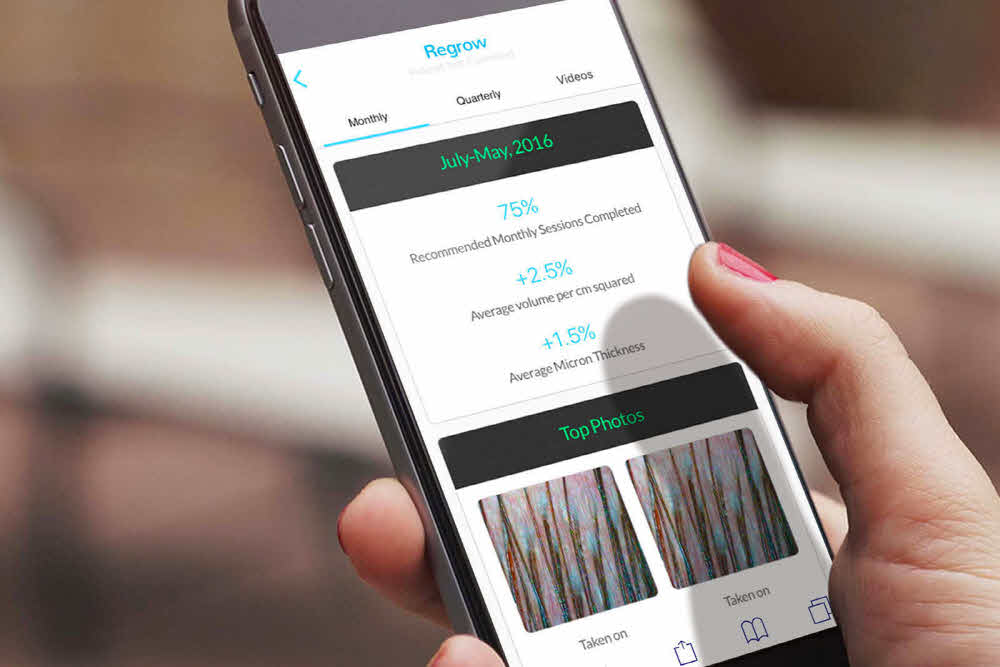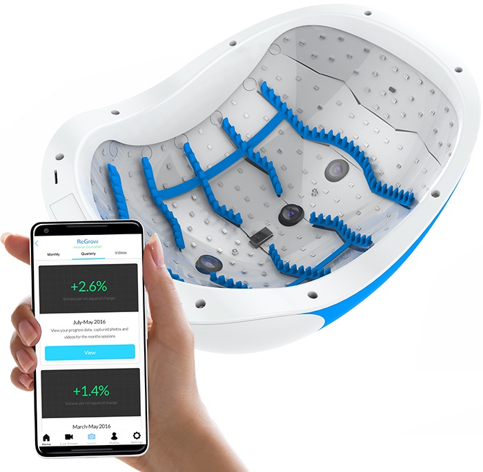 리그로우(ReGrow)는 두피 상태를 모니터링해서 저출력 레이저를 통해 머리카락이 잘 자랄 수 있도록 촉진 작용을 해주는 헬멧이다. 3∼4개월 안에 두발 탈모가 멈추고 잠들어 있던 모공이 활성화될 수 있다는 것. 본체는 헬멧 형태여서 그냥 쓴 채로 일상생활을 해도 무방하다.
