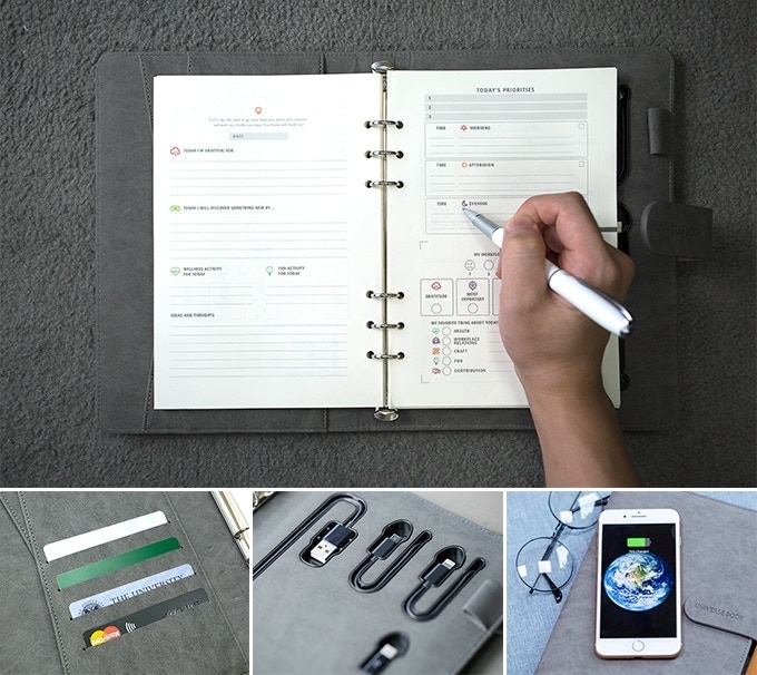 테스모(Tesmo)는 언뜻 보면 평범한 수첩이다. 하지만 이 제품은 휴대용 배터리를 일체화한 수첩. 이젠 스마트폰이나 태블릿 같은 모바일 기기를 들고 다닐 땐 휴대용 배터리는 흔한 기본 액세서리가 됐지만 가방에 넣어뒀다가 충전이 안 된 상태여서 못 쓰는 일도 많다. 이 제품은 이럴 때 도움이 될 수 있다.