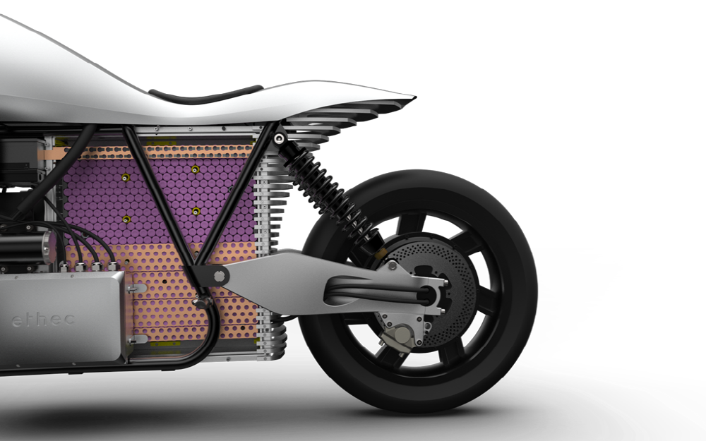 이텍(ethec)은 취리히공대(ETH Zurich)와 취리히예술대학 학생들이 손잡고 만든 전기 오토바이다. 이 오토바이는 15kWh 리튬이온 배터리를 장착, 1시간 충전하면 1,260개 셀을 이용해 400km이르는 연속 주행 거리를 갈 수 있다고 한다. 모터는 공기는 물론 펠티어 냉각 시스템을 더해 해결했다고 한다.