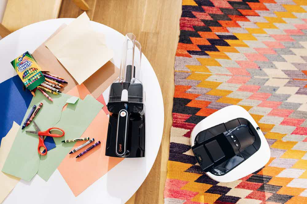 코럴원(Coral One)은 2in1 로봇청소기다. 핸디 청소기를 본체 부분에 탑재한 제품인 것. 코럴로보틱스(Coral Robots)가 개발한 이 제품은 본체에서 쉽게 떼어낼 수 있는 분리형 핸디 청소기를 품고 있다. 배터리를 이용해 30분 동안 연속 청소할 수 있고 끝쪽에 틈새용 도구를 붙여 용도에 맞게 쓸 수 있다.